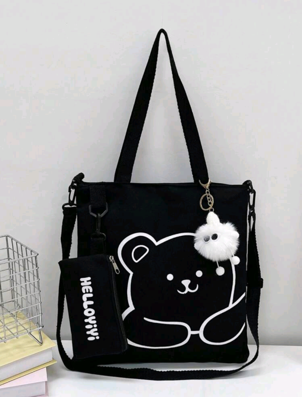Bolso importado “HelloYiyi” – con accesorio pompón, monedero y correa desmontable 💖🐻