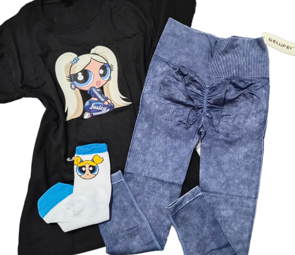 Conjunto deportivo ideal para entrenar o lucirte con estilo, este combo incluye: una calza importada calidad PREMIUM, un remerón Oversize y un par de medias algodón haciendo Juego.