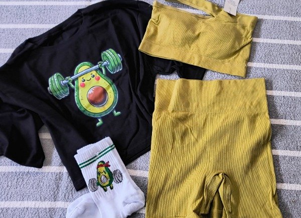 ESTE SET INCLUYE: 1 CONJUNTO DEPORTIVO CORTO SEAMLESS D'LIRIO + 1 PUPERA ALGODÓN CON ESTAMPA DTF + 1 PAR DE MEDIAS ALGODÓN.