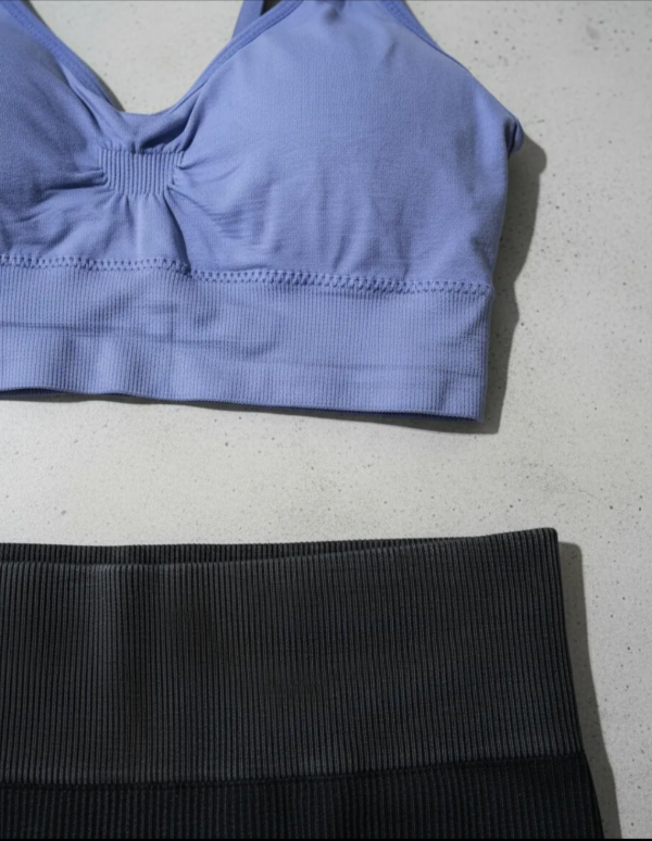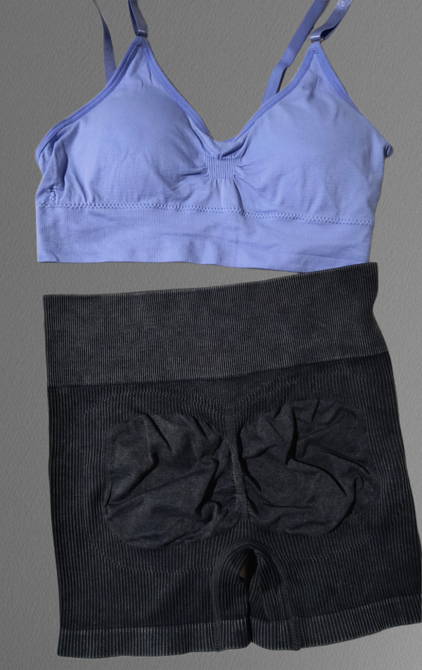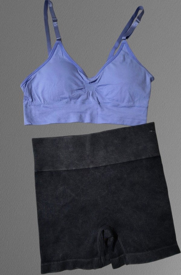 Confeccionado en tejido acanalado elástico de alta calidad, este conjunto de top + calza corta levanta glúteos se adapta al cuerpo realzando tu figura sin perder confort.