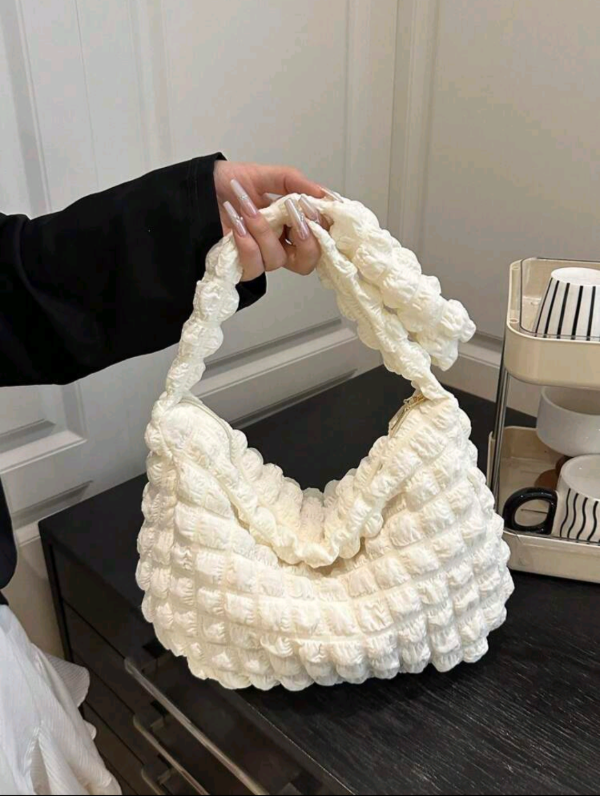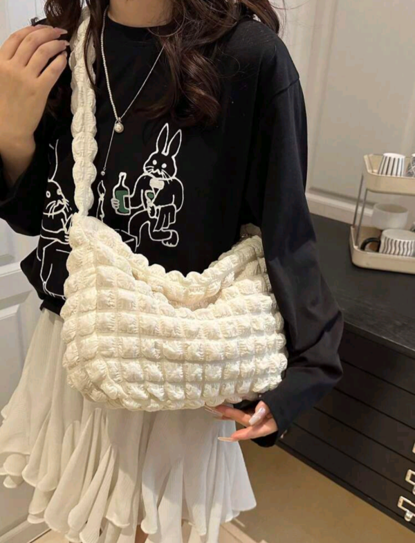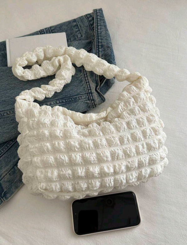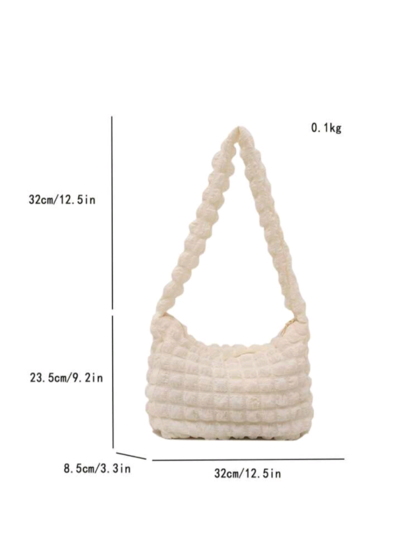 Su diseño acolchado estilo “nube” lo hace súper liviano, suave y cómodo, mientras que su correa a juego le da un toque moderno y original. Perfecto para elevar cualquier look, ya sea casual o chic ♡
